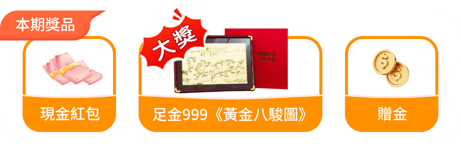 3、贈金獎:中獎 $150 / $1000 / $2000,分期發放。